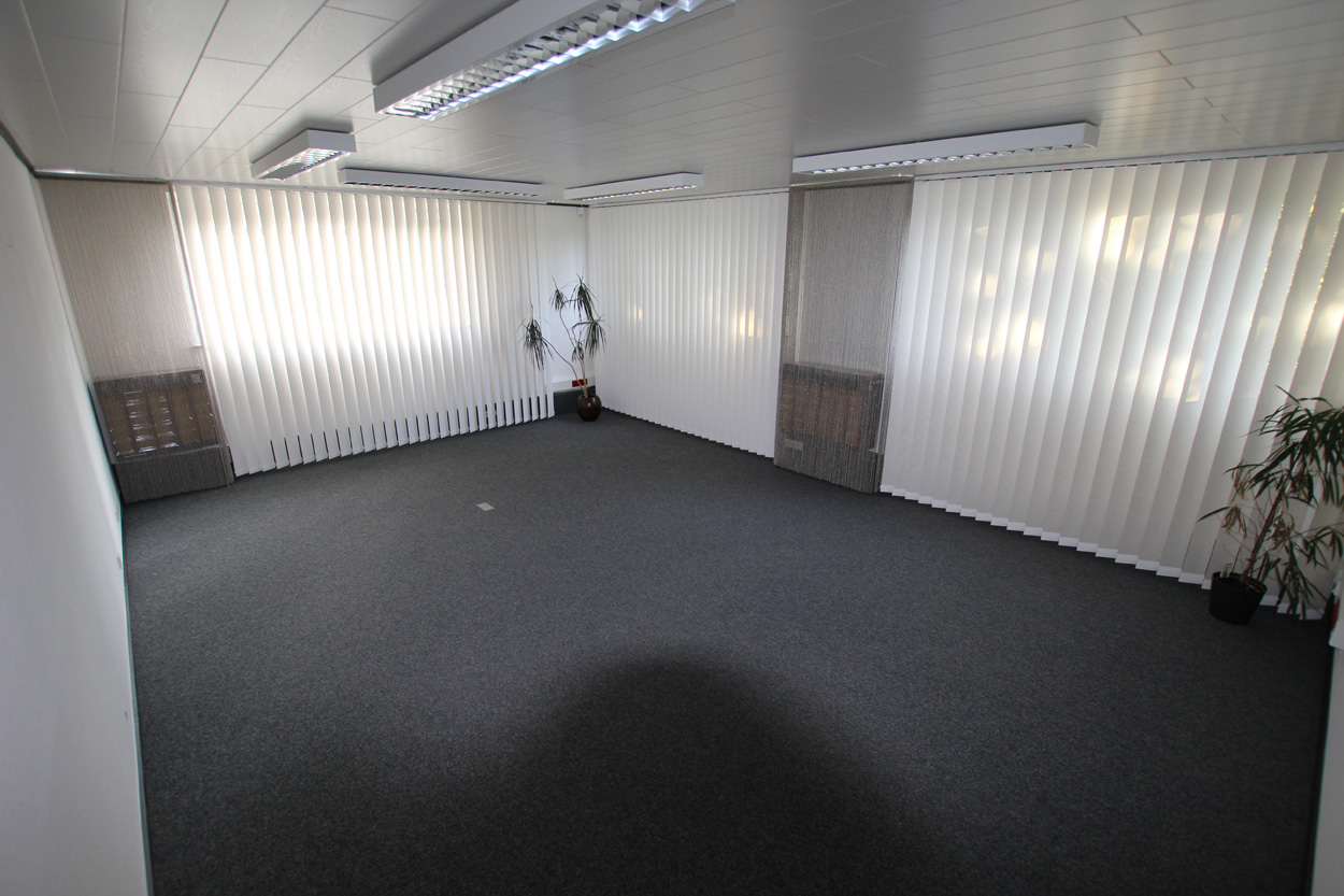 Die angebotene Bürofläche inkl. Flurflächen, Küche usw. ist insgesamt 496 qm groß und ist nicht teilbar. (Die angrenzenden Logistik-Flächen von bis zu 1200 qm sind gegen Aufpreis verhandelbar. Die Logistik Flächen werden derzeit noch anderweitig vermietet und sind beheizt und alarmgesichert. Aufpreis für Miete 3600 Euro.)