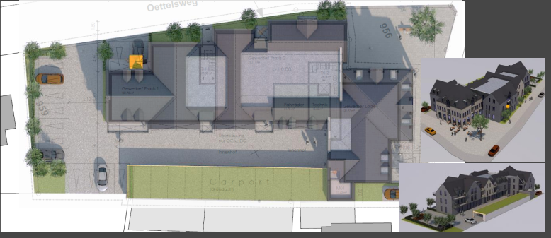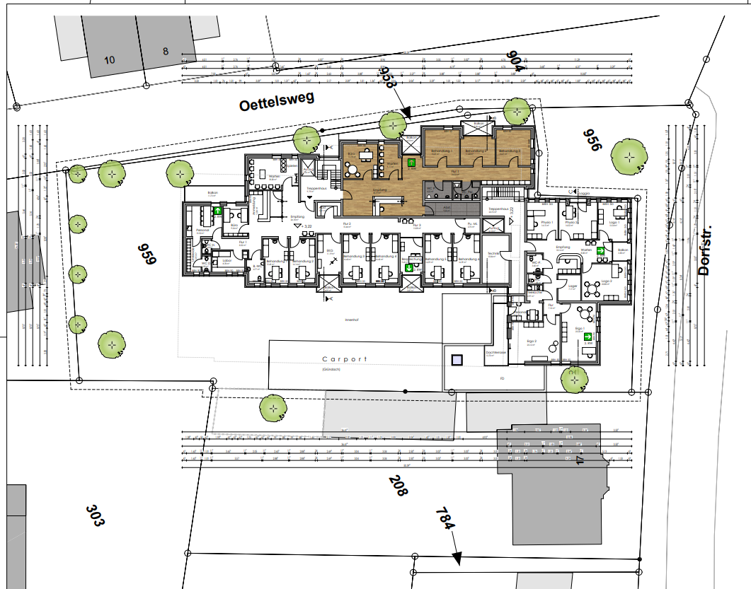 | Nutzungsmöglichkeiten | Im Erdgeschoss ist eine große Zahnarztpraxis geplant. Darüber im Obergeschoss wird eine Hausarztpraxis einziehen.